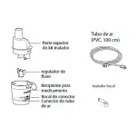 Composto por tubo de ar de 100cm de comprimento, regulador de fluxo, copo para medicamento com capacidade de até 7 ml e parte superior.