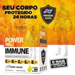 O Power Mill IMMUNE é um suplemento natural em capsulas que é indicado para homens e mulheres e possui uma fórmula especial com 1000mg de Vitamina C,90 2000UI de Vitamina D,90 30mg de Zinco,90 80mcg de Selênio e ainda 50mg de Vitamina E,90 sendo o produto completo para manter a imunidade e o corpo protegido em até 24 horas.